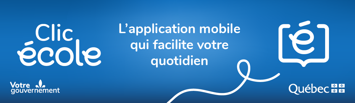 Destinée aux parents d’élèves du préscolaire, du primaire et du secondaire, l’application mobile Clic école vise à simplifier le quotidien des parents. Elle réunit l’ensemble des renseignements scolaires utiles au suivi scolaire de l’élève dans une application simple et sécuritaire. Cette nouvelle application remplace MParent qui sera retirée le 31 mars 2026.